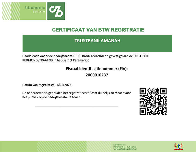 BTW-certificaat Trustbank Amanah